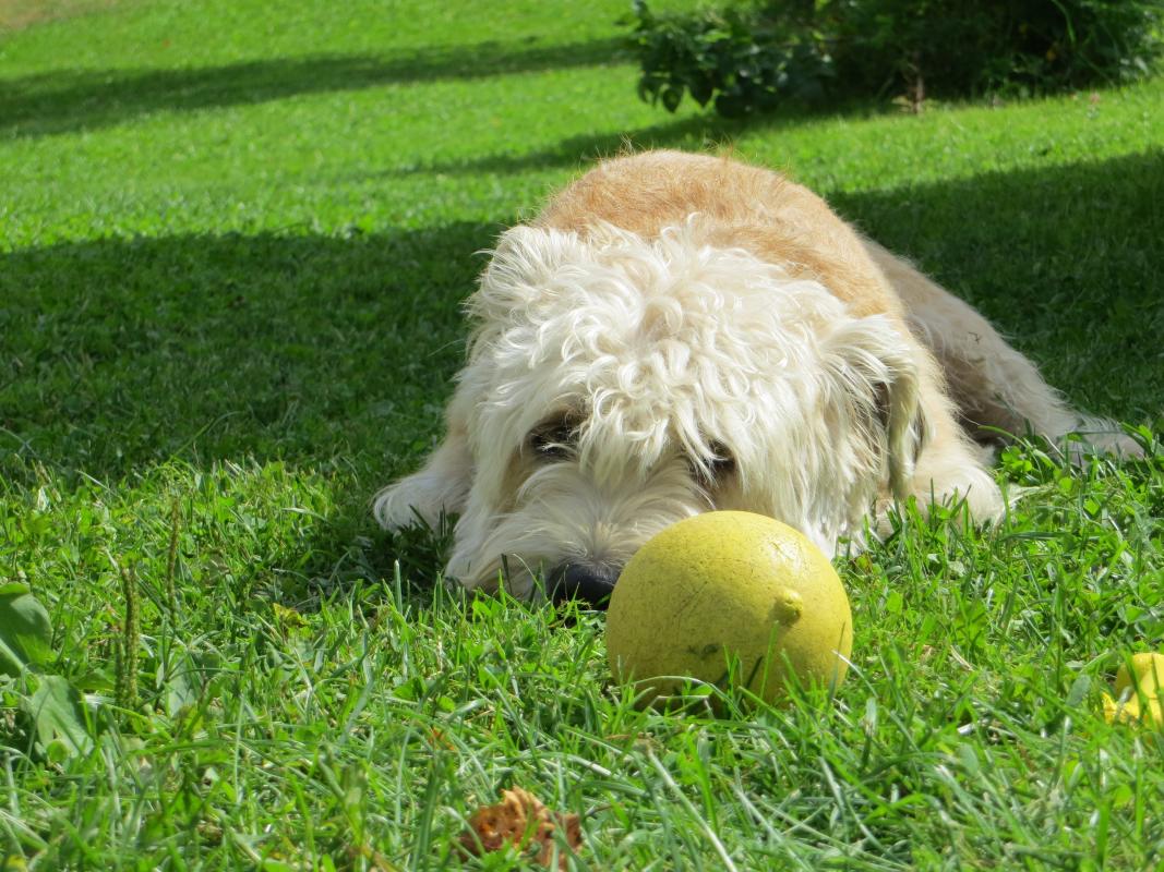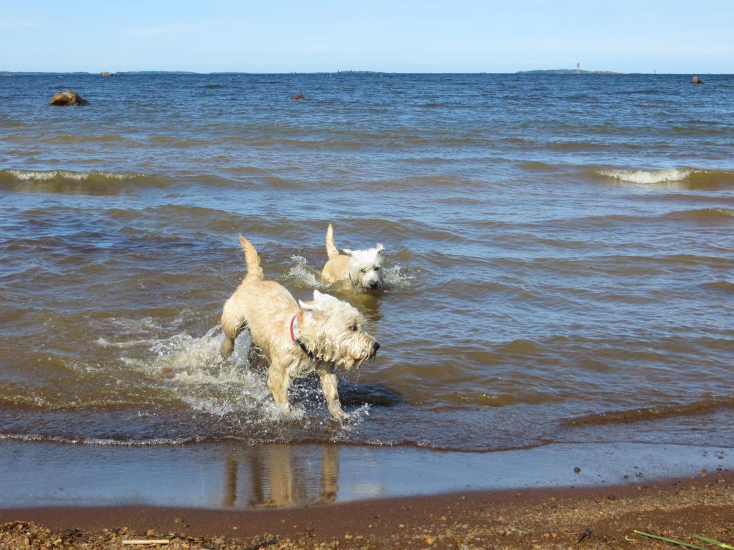 …teillä pitää olla supersiistiä! Vaikka glennillä ei ole karvanlähtöä, se tuo sisään paljon hiekkaa ja pieniä metsiä. Sillä on parta, jonka se pyyhkii mielellään mattoon ruokailun päätteeksi.